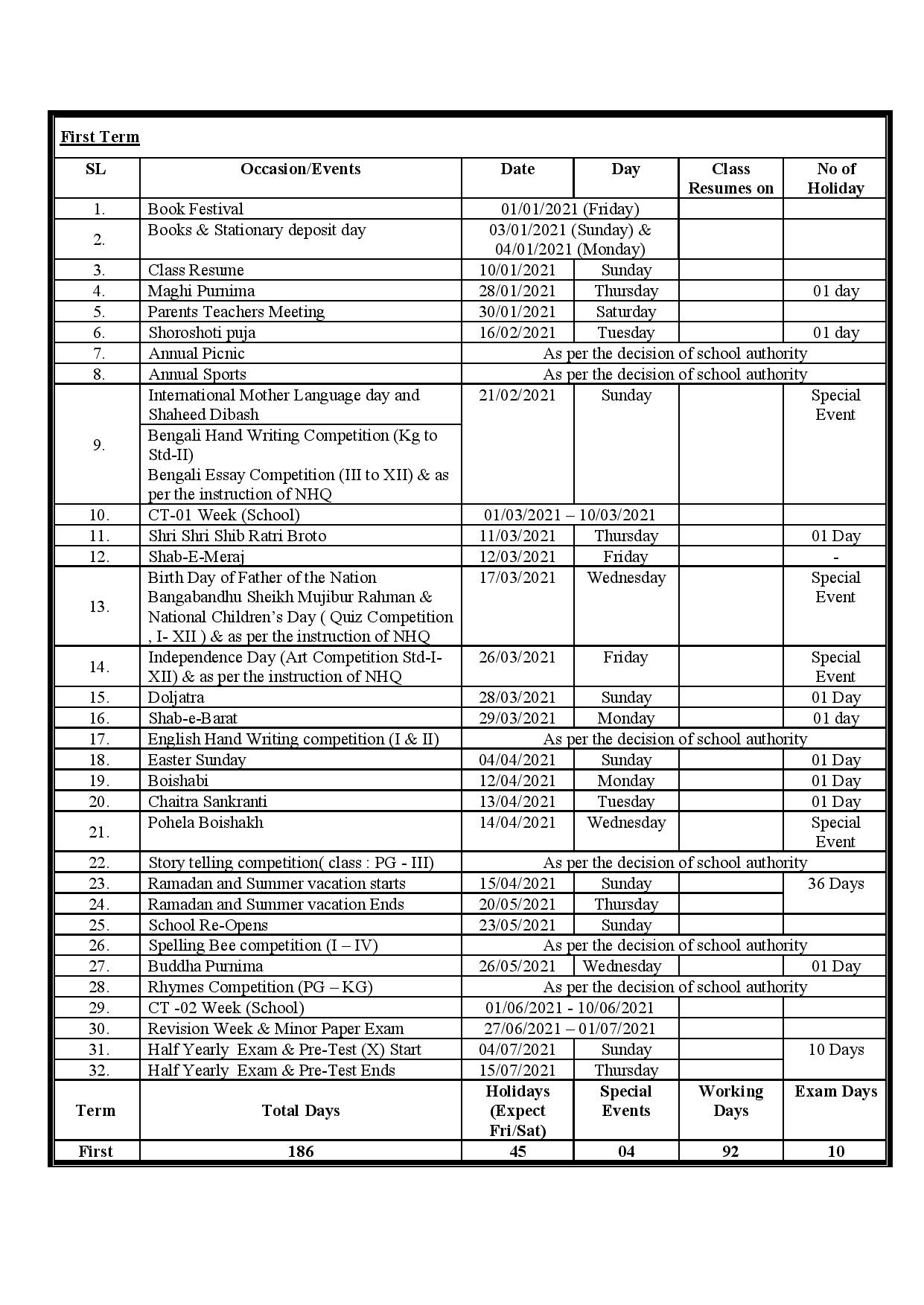 একাডেমিক ক্যালেন্ডার-১